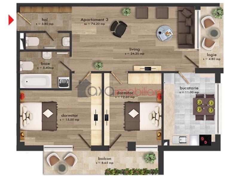 Apartment 3 rooms for sell in Cluj-napoca, Buna Ziua ID 3193