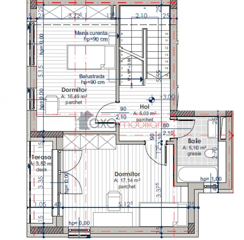 ETAJ: 2 dormitoare, baie, hol.