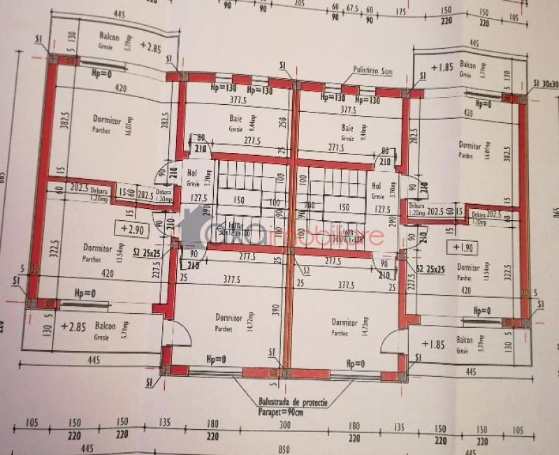 AL DOILEA NIVEL / ETAJ: 3 dormitoare, 2 bai, 4 balcoane, hol.