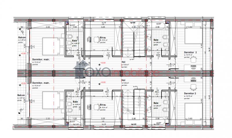ETAJ: 3 dormitoare, 2 bai, 1 hol, 1 balcon.