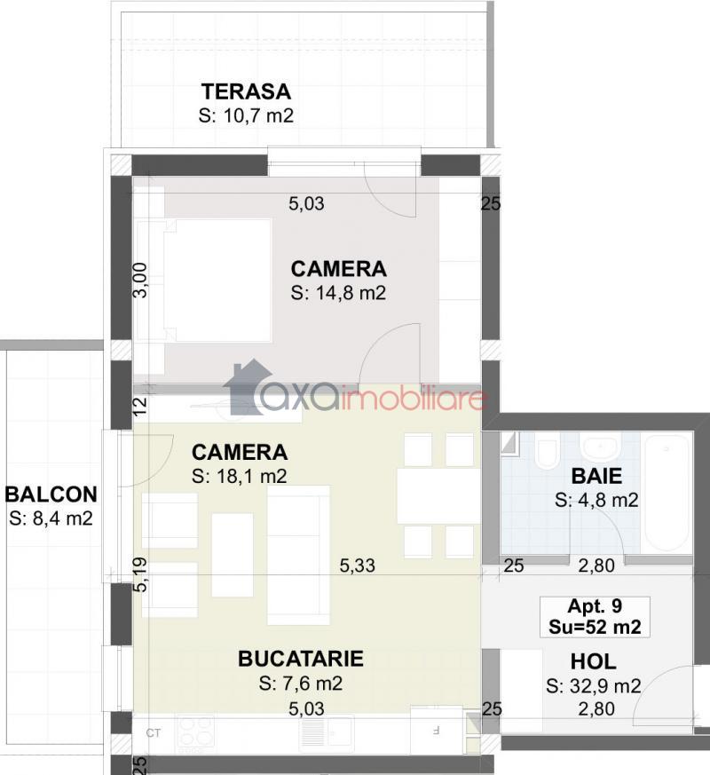 Suprafata utila este 52 mp, fiind frumos compartimentata intr-un living cu 1 bucatarie open space, 1 dormitor, 1 hol, 1 baie, 1 balcon (8.4 mp) si 1 terasa (10.7 mp).