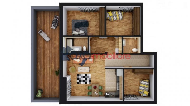 De vanzare apartament cu 4 camere, suprafata utila 85 mp, imobil nou, pozitionat la etaj intermediar (1E/D+P+2E+M), ce dispune de terasa cu suprafata de 37 mp.