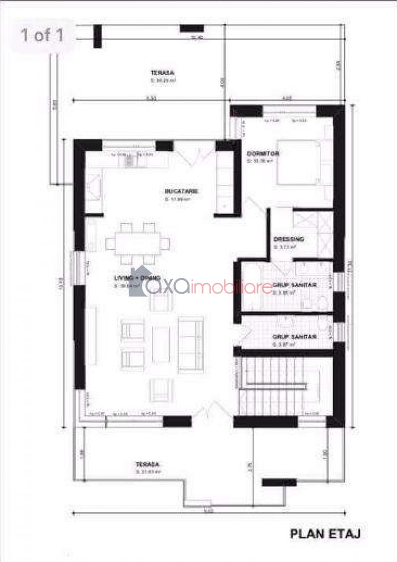 ETAJ: 1 living, 1 bucatarie, 1 dormitor, 2 bai, 1 dressing si terase.