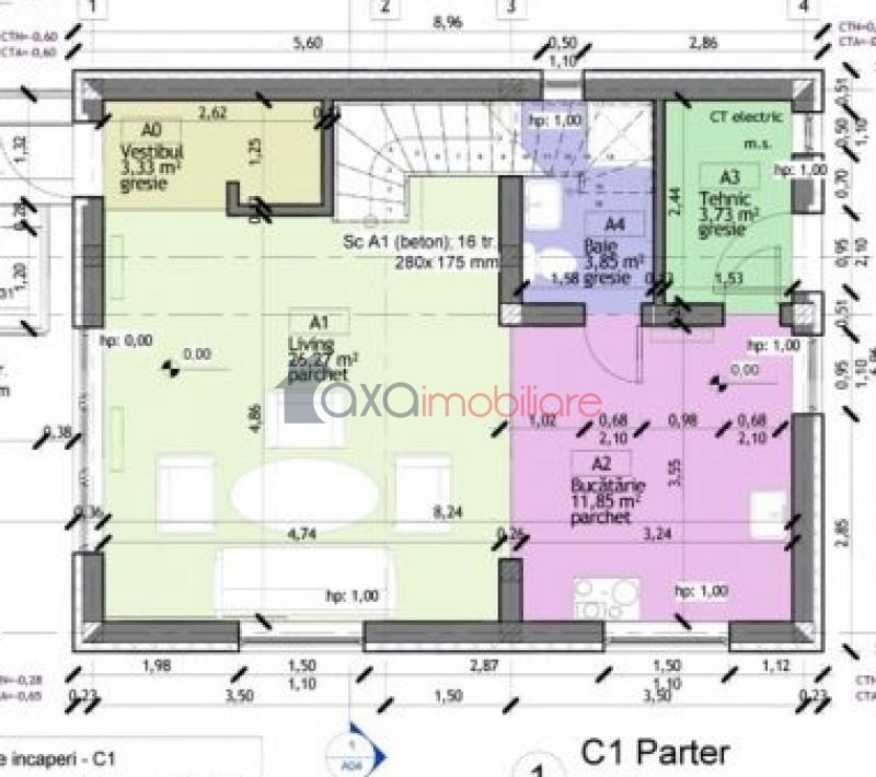 * PARTER / PRIMUL NIVEL: living, bucatarie, baie, vestibul, terasa, CT.