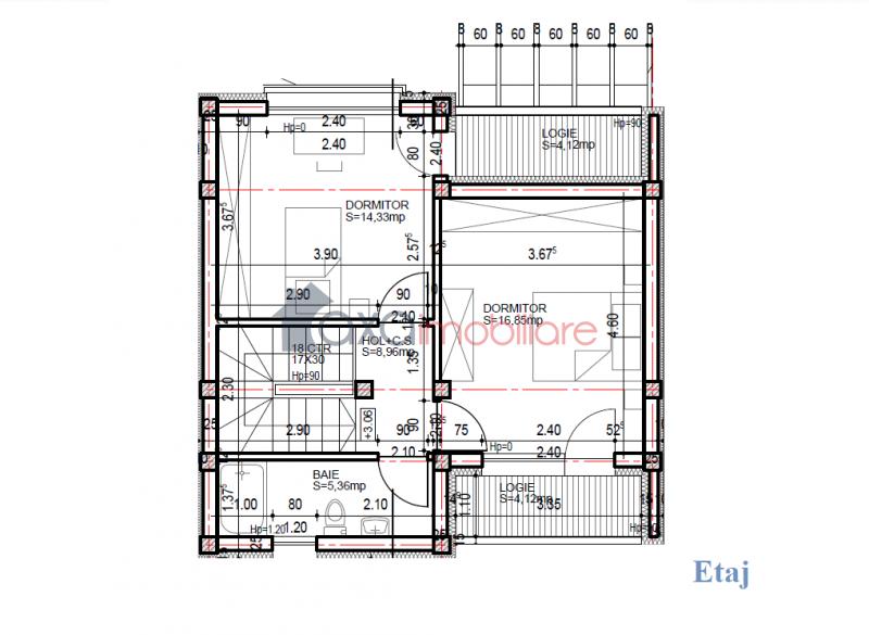 ETAJ / AL DOILEA NIVEL: 1 hol, 2 dormitoare, 1 baie, 2 logii.