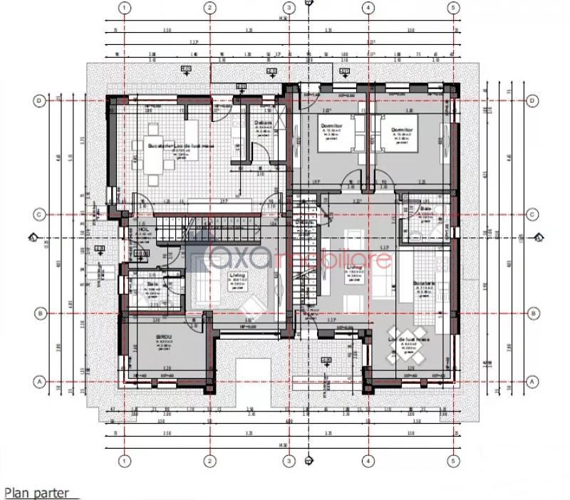 Compartimentare: 1 living, 1 bucatarie, 4 dormitoare, 1 debara, 3 bai, balcon si terasa.