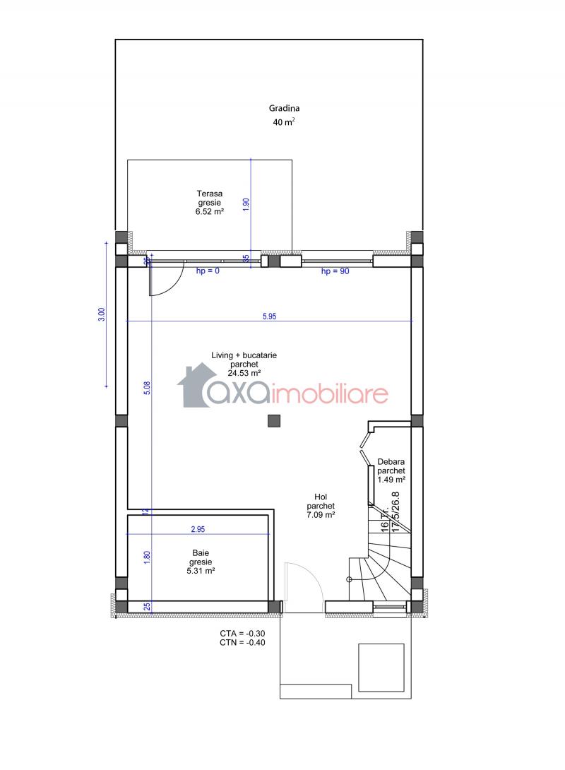 PRIMUL NIVEL / PARTER: living cu bucatarie open space, baie, terasa, scara interioara.