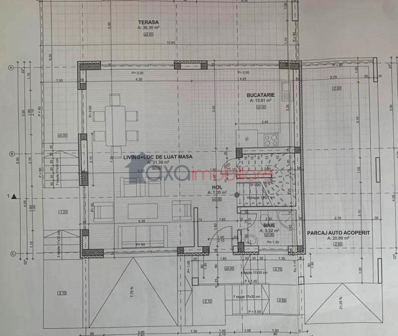 PARTER: 1 living cu loc de luat masa, 1 bucatarie, 1 hol, 1 baie, casa scarii, 1 terasa.