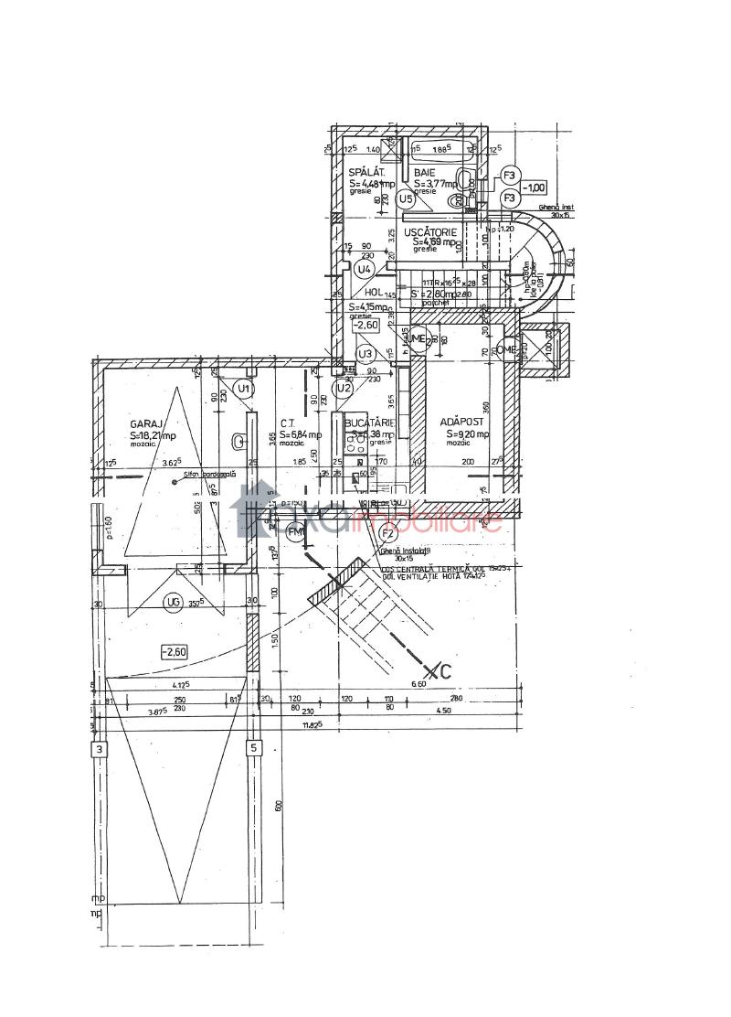 DEMISOL: garaj, CT, spalatorie, baie, uscatorie, adapost, bucatarie, hol.