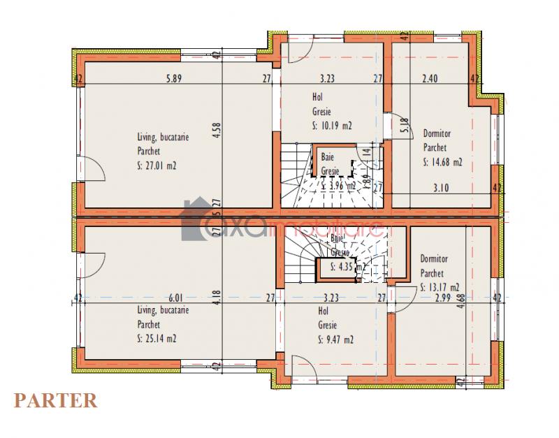 PARTER / PRIMUL NIVEL: 1 living cu 1 bucatarie de tip open space, 1 dormitor, 1 hol, 1 baie, scara interioara.