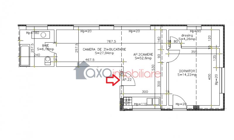 Apartamentul are o suprafata utila de 52.6 mp si este pozitionat la etajul 5/5, intr-un bloc nou din zona Calea Turzii.