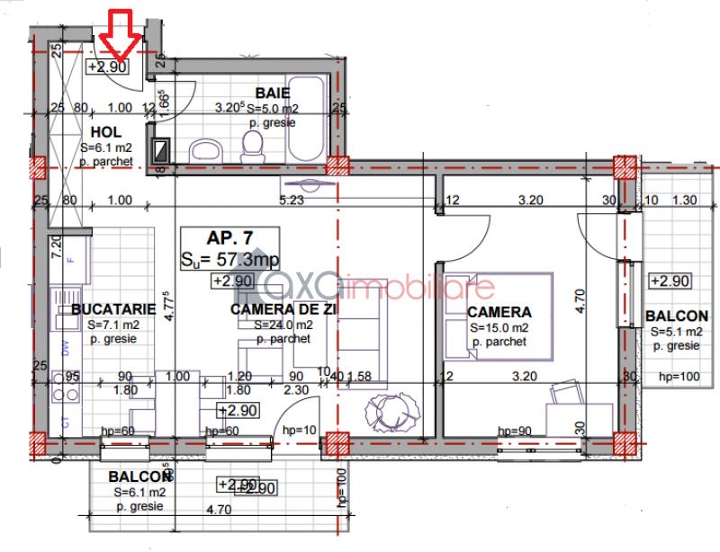 Apartamentul dispune de o suprafata utila de 57.3 mp si de compartimentare semidecomandata.