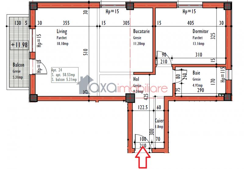 De vanzare apartament cu 2 camere, semifinisat, suprafata utila 58.53 mp, imobil nou, situat in Cluj-Napoca, in cartierul Marasti.