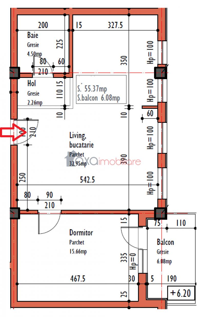 Compartimentare: 1 hol, 1 living cu 1 bucatarie de tip open space, 2 dormitoare, 1 baie si 1 balcon.