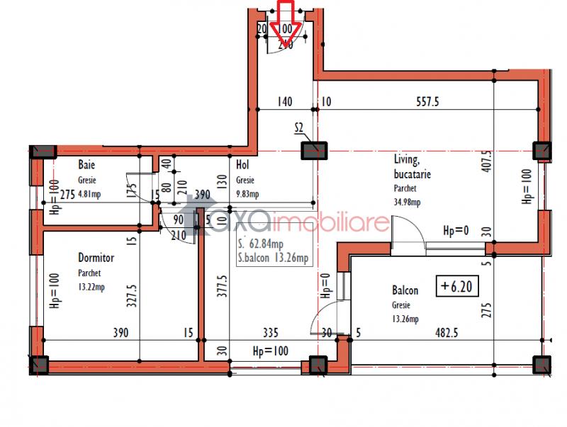 Suprafata apartamentului este de 62.84 mp.