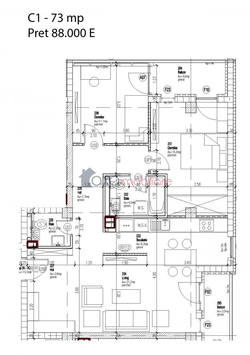 Oferim spre vanzare apartament cu 3 camere, cu suprafata utila de 73 mp, semidecomandat, pozitionat la etajul 1 al unui imobil nou, finalizat in 2015, cu regim de inaltime P+10E, ce dispune de lift. Apartamentul este situat in cartierul Zorilor, zona Sigma, intr-o locatie linistita. Este compus din 1 living cu 1 bucatarie de tip open space, 2 bai, 2 dormitoare, 2 holuri si 2 balcoane. Dispune de geamuri termopan cu tamplarie din PVC si usa metalica la intrare. Se vinde la stadiul de semifinisat cu sapa autonivelanta si peretii gletuiti. Aceleasi compartimentari si suprafete se pot achizitiona atat la parter, cat si la etaje intermediare.