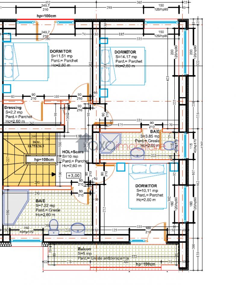 ETAJ / AL DOILEA NIVEL: 3 dormitoare, 2 bai, hol, 1 balcon.